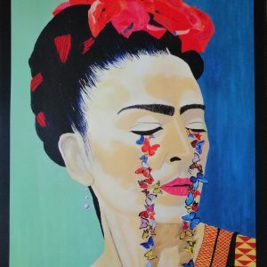 Butterfly Cry is the first of the Mexican Heroine series by John McDonald, a body of work exploring human themes of love and loss, suffering and strength, passion for life. Inspired by Mexico’s most-loved female artist, who is also oved around the world, Butterfly Cry expresses the power of creativity to change suffering or pain into beauty.