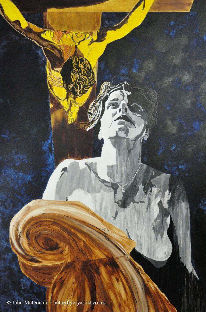 Mother God is an original painting by the Butterfly Cry Artist, Scottish artist John McDonald, commissioned for Déda Derby Inspired Reflections exhibition.